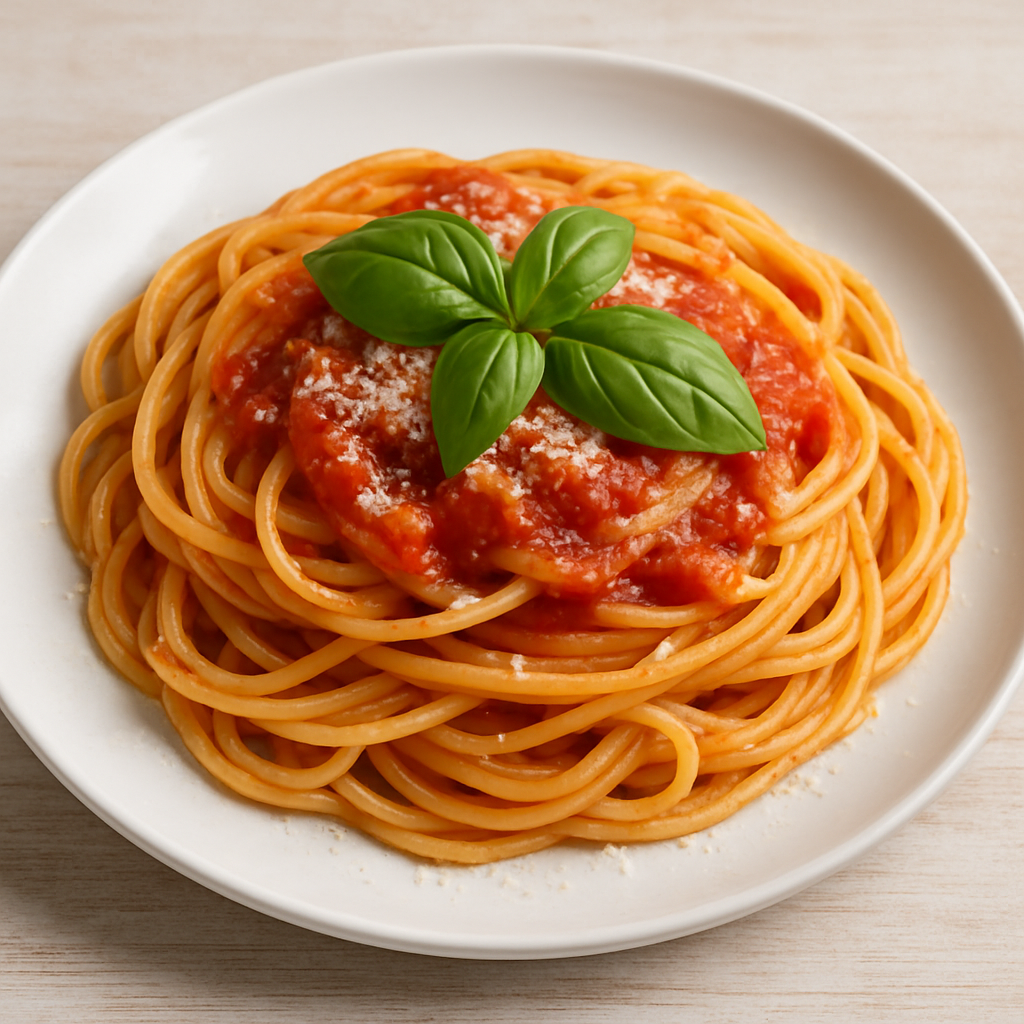 Spaghetti al pomodoro is a simple, classic Italian pasta made with al dente spaghetti tossed in a fresh tomato, garlic, and basil sauce. Light, flavorful, and comforting, it highlights the natural sweetness of ripe tomatoes in a beautifully straightforward dish.